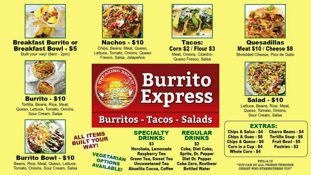 Welcome to Breaking Bread Burrito Express, a culinary gem nestled in South Padre Island, Texas. This vibrant eatery specializes in delicious, made-from-scratch burritos that will tantalize your taste buds. You can fully customize your meal with fresh vegetables, a variety of beans, flavorful Spanish rice, and an array of cheeses, including the distinct Mexican goat cheese.